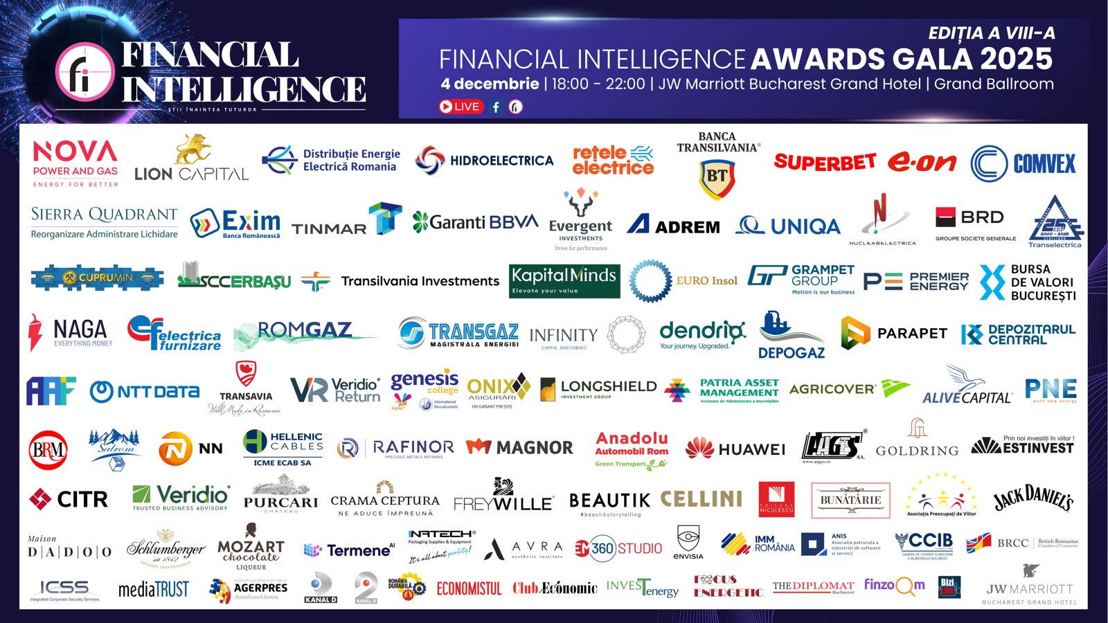 Ceremonia de Decernare a Premiilor Financial Intelligence aduce în lumină companii și oameni de business care s-au remarcat prin rezultate sau acțiuni extraordinare, în anul care a trecut.