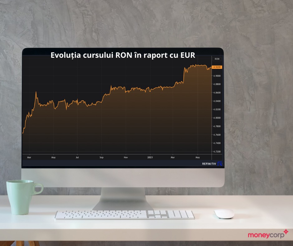 Potrivit acestuia, un semnal în acest sens este așteptat să vină și din SUA, unde are loc cea mai rapidă revenire economică de după recesiunea din 1930, care însă a adus și o inflatie de 4,2%, mult peste ținta dorită. Drept urmare, FED a anunțat pentru anul 2023 cel puțin o creștere a dobânzilor de referință, mult mai repede decât așteptările inițiale, anunț ce a adus volatilitate semnificativă în piețe ( valutară, acțiuni, obligațiuni, metale prețioase). Creșterea dobânzilor va atrage aprecierea dolarului în raport cu euro, deci implicit cu leul românesc. Astfel că, de la momentul anunțului FED, respectiv data de 18 Iunie, leul s-a depreciat în raportul cu dolarul cu aproximativ 1.8%.