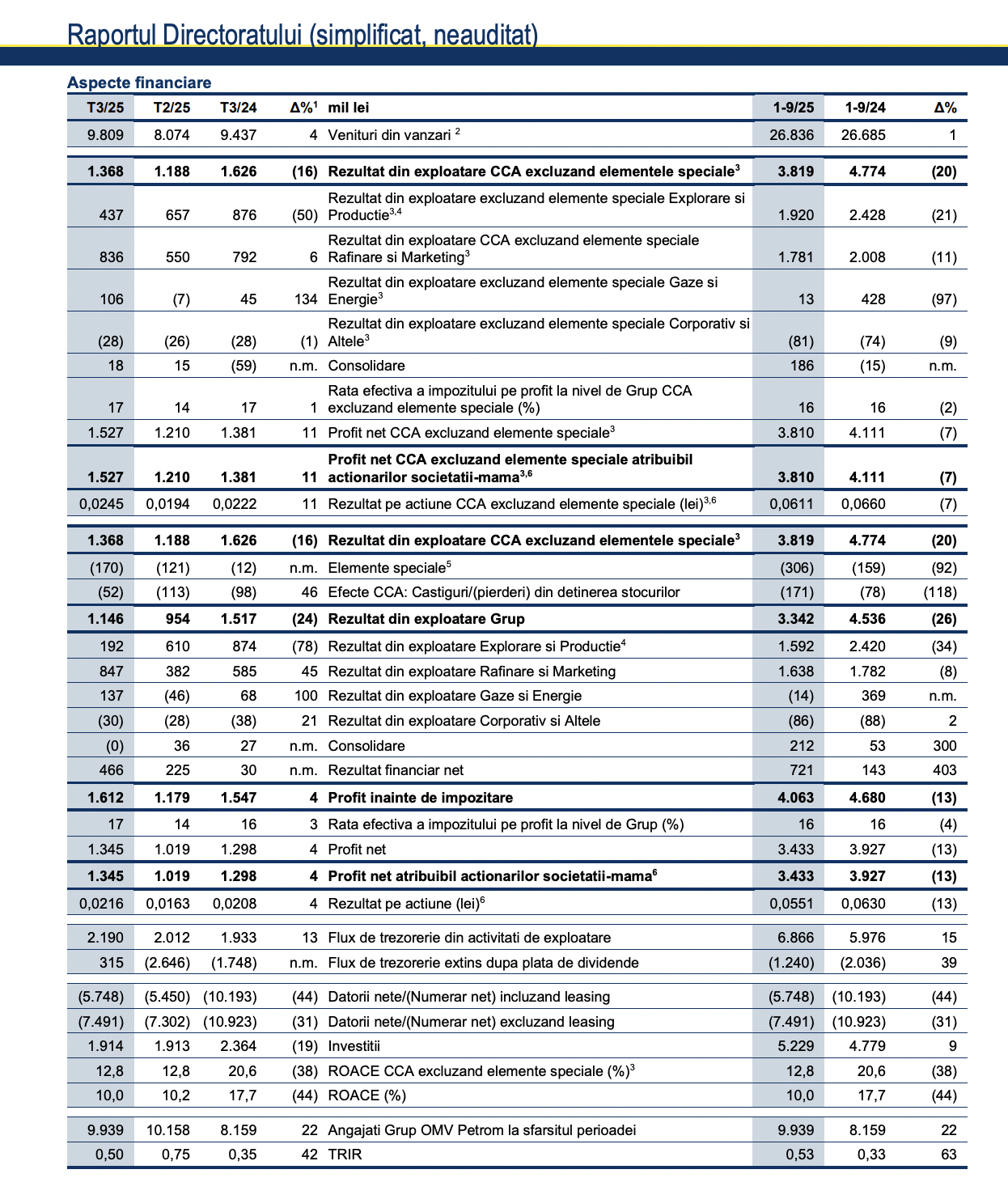 OMV Petrom raportează un profit net de 3,4 miliarde lei, în primele nouă luni, în scădere cu 13%, … Continuă lectura OMV Petrom raportează un profit net de 3,4 miliarde lei, în primele nouă luni, în scădere cu 13%