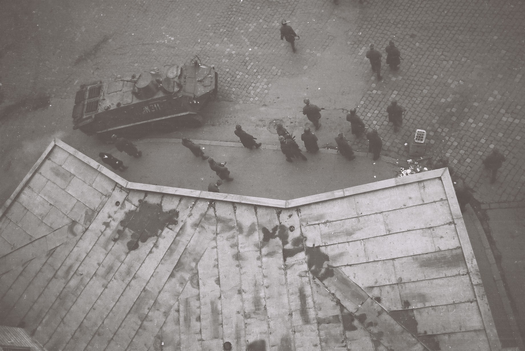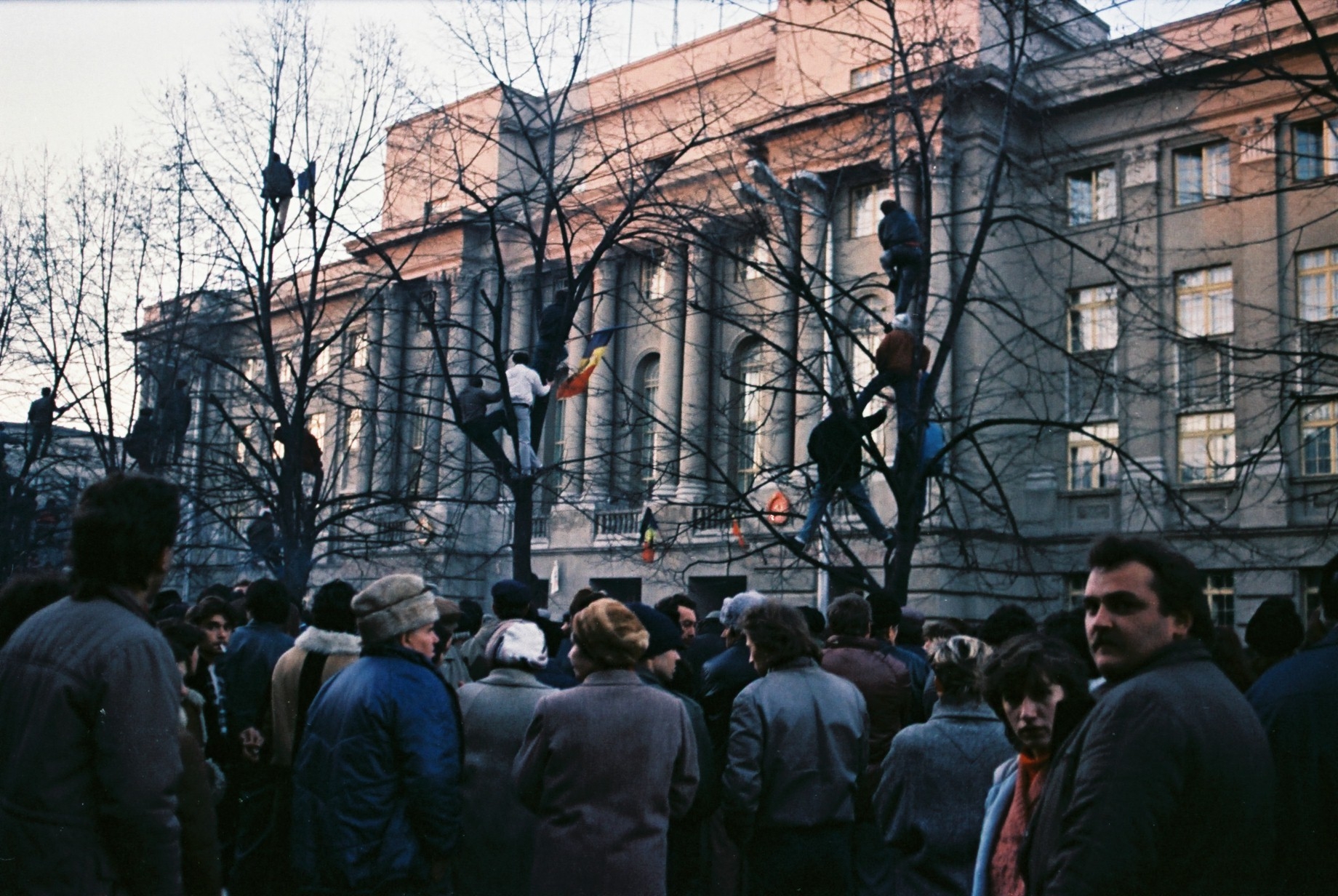 În Timişoara se aud primele focuri de armă, până după miezul nopţii având loc lupte de stradă între civili şi militari şi fiind incendiate TAB-uri, tancuri şi magazine. De asemenea, pe treptele catedralei, un grup format din copii şi tineri civili încep să scandeze: “Jos Ceauşescu!”, “Libertate!”, “Vrem o ţară liberă!”. Ei cântă colinde, iar alte câteva sute de manifestanţi li se alătură, fluturând un steag din care fusese decupată stema comunistă.